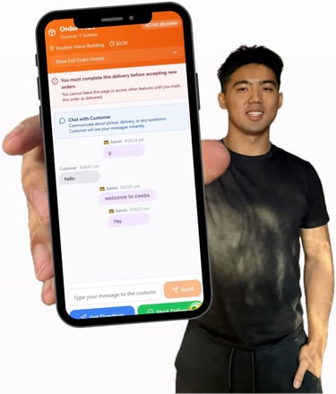 Ceebs is built for students, by students. We’re tired of seeing random delivery drivers riding around campus when the job could go to a fellow student instead. Unlike traditional services, Ceebs is faster, more convenient, and designed for small, everyday tasks—whether it's grabbing food, picking up a print job, or running a quick errand.