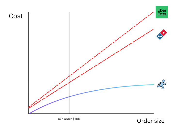 Sites like Dominos and Uber Eats sneak hidden fees which are passed on to users. This leads to misleading prices and exploding delivery costs.
