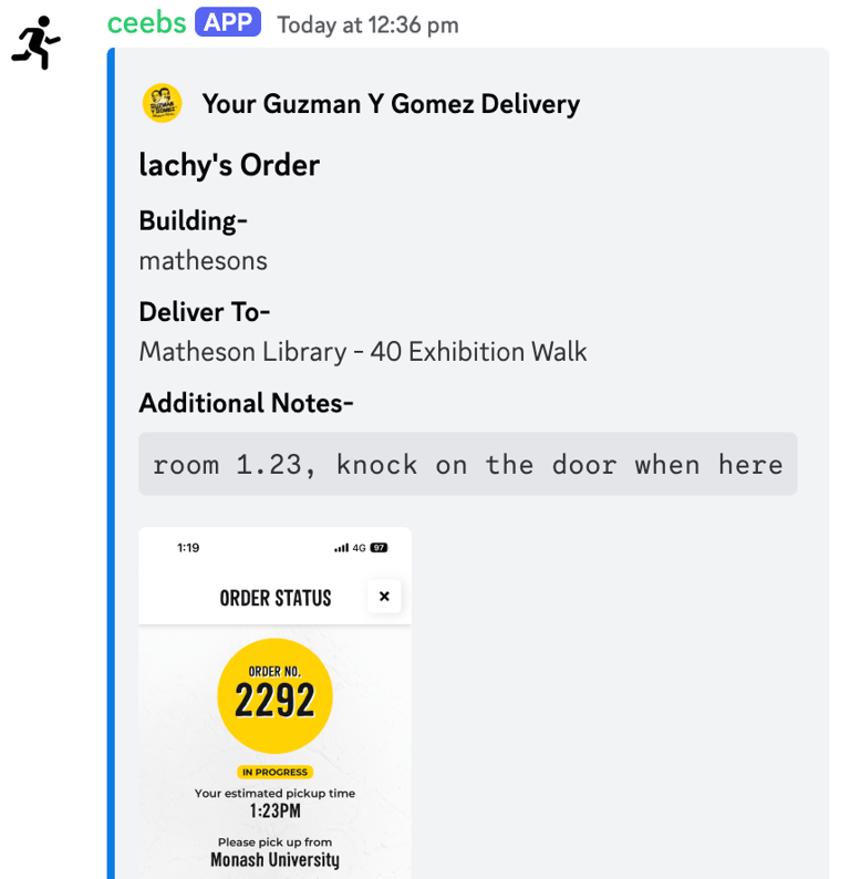 When they send this, the details of their order will be shown.
