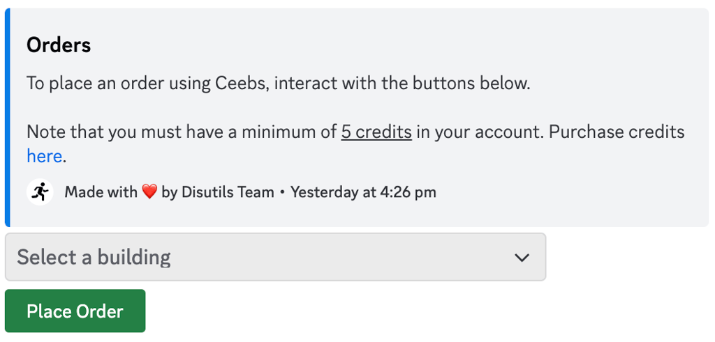 Select the building you are ordering to.
