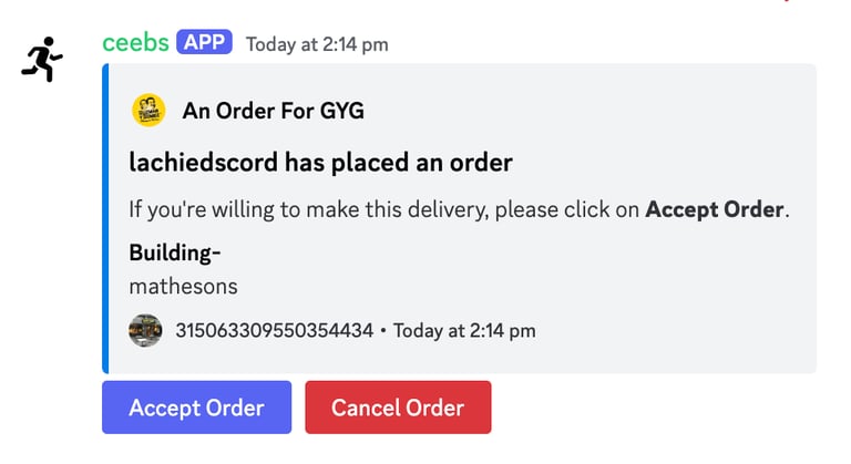Your order will be posted in the #📋 task-board for runners to claim.